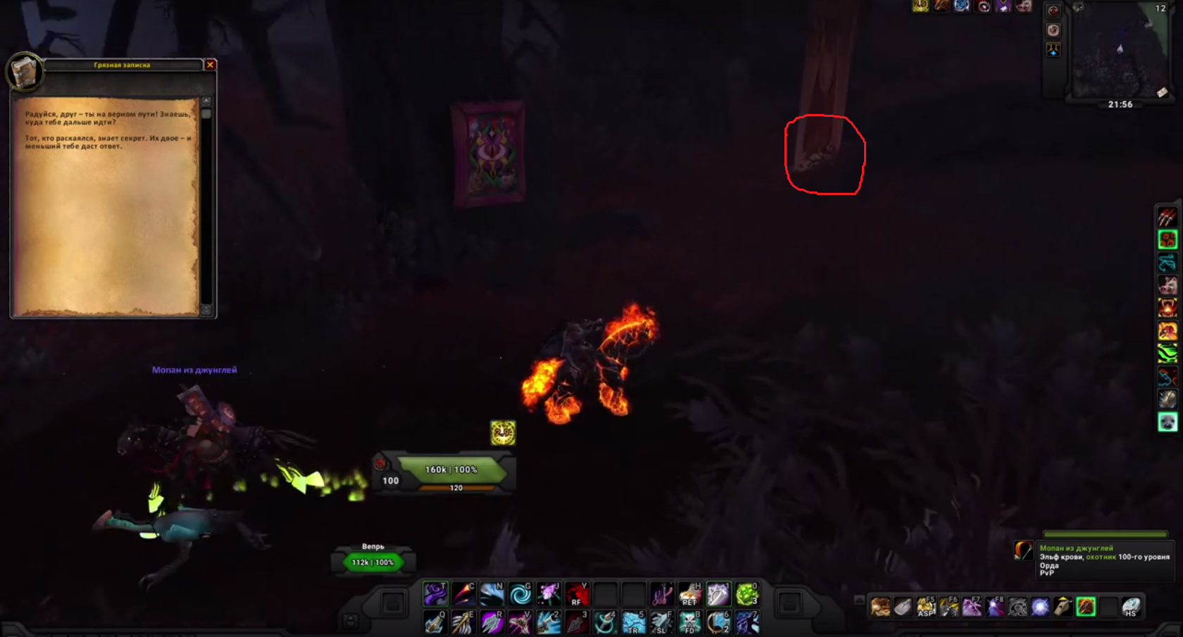 У них есть что то общее... - На ярмарке Новолуния можно встретить НИП по имени Рона Зеленозуб. Она торгует очень аппетитным товаром, а главный ингредиент — части тела разных рас (людей, ночных эльфов, дренеев и т.д).
