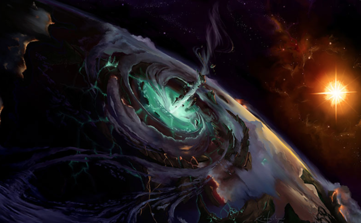 Тем временем удары один за другим сотрясали дворец. Попытки Саргераса проникнуть в Азерот привели к чудовищным штормам и катаклизмам, которые в итоге разорвали материк на четыре части, образовав новый океан. Гигантские волны преследовали эльфов, заставив тех отступать до самой горы Хиджал.