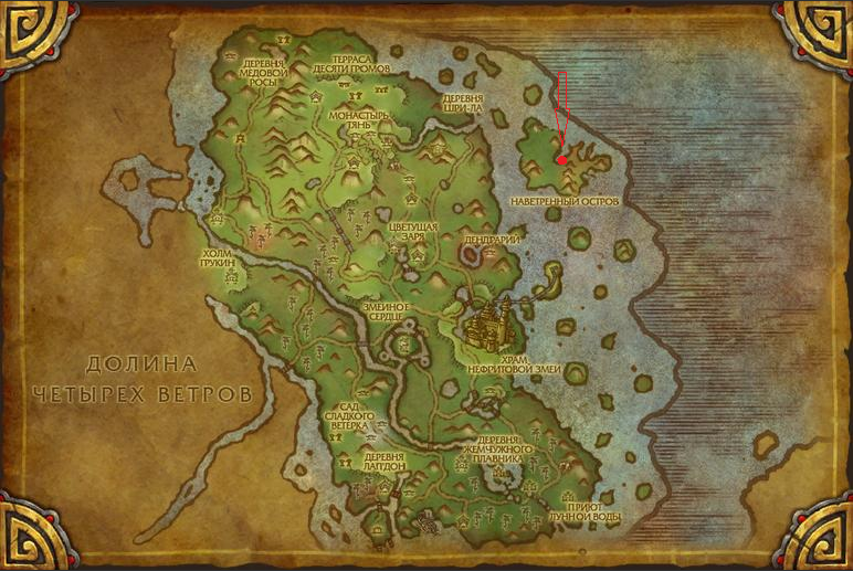 Наветренный остров лучшее место для добычи Ветрошерстяной ткани. Яйцееды из клана Скользкой Чешуи дерутся с 5-6 драконами. Если убить яйцеедов, то игра сразу начнет спанить еще и еще чтоб напрвить их против драконов, а так как Вы будуте их убивать не давая дойти до драконов, то у Вас получится просто отличное место для фарма Ветрошерстяной ткани. Словом вот где это место находится