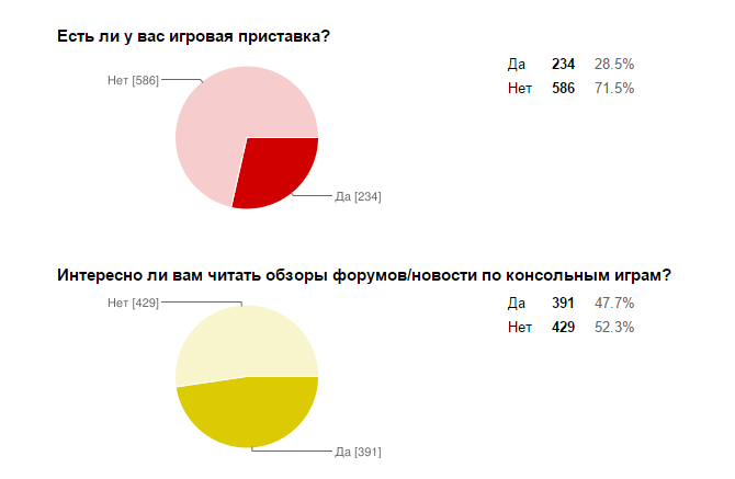 Также мы выяснили, что у 28% наших читателей есть игровая консоль – цифра ожидаемо небольшая. Правда, мнение о том, интересны ли вам новости и обзоры по консольным играм разделилось: 47,7% сказали «Да», и 52,3% — сказали «Нет».