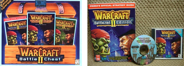 Обложка диска «WarCraft II: Battle Chest» и официальная инструкция к игре «Strategy Guide»