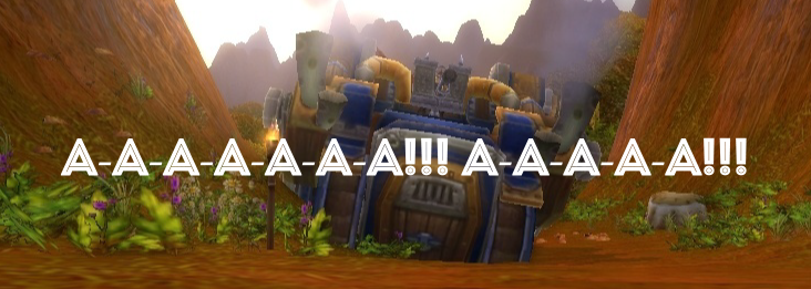 Квест А-А-А-А-А-А-А!!! А-А-А-А-А!!! с лучшим, наверное, названием в игре доступен игроками Альянса в Красногорье. Крайне веселый квест, если вы любите массовые убийства и куски плоти, которые разлетаются от взрывов. По квесту вам нужно убить 200 солдат Орды при помощи парового танка. Веселье да и только. Вы стреляете, убиваете врагов, вокруг куча крови. Но больше всего радуют фразочки, которыми сыплет Джон Джей Кишан: "ААААААААААААААААААААААААААААААААААААА!", "Я НЕ МОГУ НАЙТИ ТВОИ НОГИ, ДЖОИ! НЕ МОГУ НАЙТИ ТВОИ ГРЕБАНЫЕ НОГИ", "КРОВЬ И ГРОМ!", "БЕГИТЕ К СВОИМ ТЕМНЫМ БОГАМ, ГЛУПЫЕ ЖИВОТНЫЕ". Это просто угар.