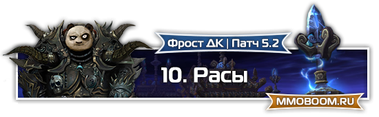 также я бы расы для 5.2 подкрутил, а не скатывал с ежей, там их подкрутить не забыли. Но дальше КДшек в гайде не ковырялся. В Орде сейчас Тролли>Орки/гоблины>прочие. В альянсе дренеи смещены т.к. в новом шмоте и при использовании БиС-триньки с джикуна будет неминуемый оверкап хита(особенно с мечом с Совета), что ставит хуманов по 2 причинам(2 бис пухи и бесполезность меткости дренеев) выше для контента 5.2