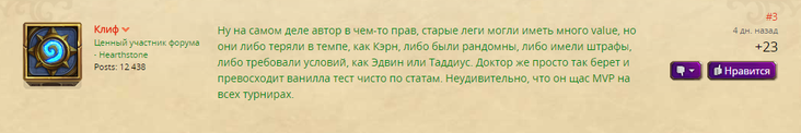 Автора темы поддержал Клиф. Он считает, что доктор превосходит старые легендарки, которые либо имели штрафы, либо требовали определенных условий, и это привело к тому, что Бум стал одной из важнейших карт для турниров.