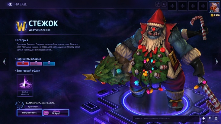 Игроки могут бесплатно прокатиться на верховом алчном гоблине, для его получения необходимо только зайти в игру. Ну и не забудем про Стежка, преемника Дедушки Зимы, новогодний скин которого сейчас тоже можно приобрести за 249 руб.