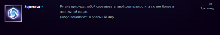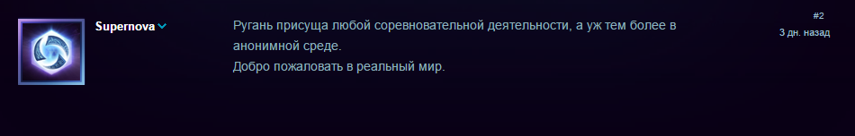 Игрок Astis отметил, что для тех, кого оскорбляет нецензурная лексика, есть фильтр мата и сказал, что не считает зазорным обозвать человека, который играет плохо. «А вообще, забавное дело — если играть хоть немного адекватно, то никто тебя материть не будет. Более того, тут такой милый контингент, что нередко и поблагодарить могут. Хотя от русскоговорящей части игроков такого не дождешься обычно, да», - написал он.