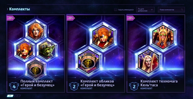 В магазине есть несколько комплектов на продажу, которые содержат в себе комбинацию из героев, обликов, средств передвижения и\или стимуляторов, к тому же цена ниже, чем если бы вы покупали всё это по отдельности. Например, текущий стартовый комплект включает 3 героя, коня и стимулятор на 7 дней за 249₽, что на 77% дешевле, чем если бы вы купили это всё по отдельности. Комплект героя Кель'таса даст доступ к персонажу, а также его облику техномага, на 25% дешевле.Для покупки героев и обликов также может быть полезно дождаться 50% скидки, которые появляются по понедельникам в 2 часа дня и обновляются каждую неделю.