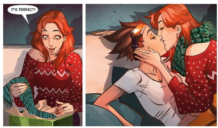 Позже выясняется, что подарок предназначался девушке по имени Эмили. Открывая его, в знак благодарности она целует Трейсер. Комикс демонстрирует, как проводят праздники и другие персонажи Overwatch.