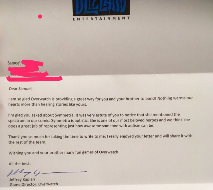 Гейм-дизайнер ответил на письмо фаната, в котором заявил, что Симметра на самом деле аутист и один из самых любимых персонажей в команде Blizzard.