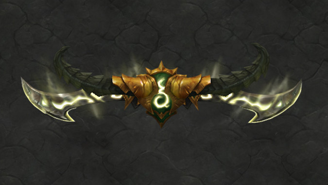 Много лет назад темный титан Саргерас предложил альдрахийцам присоединиться к Пылающему Легиону, но получил отказ. Альдрахийцы истребили множество демонов, прежде чем их народ пал. Саргерас лично убил величайшего из альдрахийских воинов и завладел его оружием. Позже одна из охотниц на демонов перешла на службу Кил'джедену, правой руке Саргераса. Он вручил ей эти боевые клинки, чтобы она обратила против Азерота всю силу некогда великого народа.
