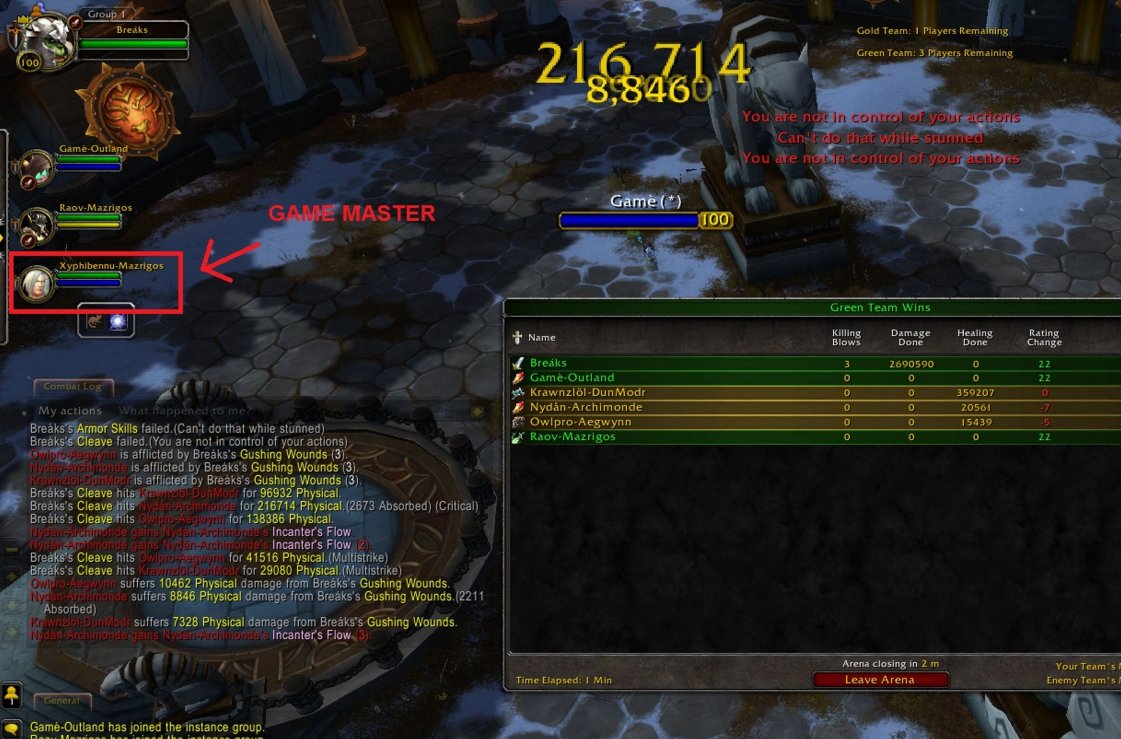 Игроки собрались, чтобы поиграть на арене, ничего не предвещало беды: 2300 MMR, команда с магом. Они были готовы сражаться, но сразу после начала боя по ним прошел огромный урон Кровоточащих ран и вся команда погибла. Так теперь работают читы.