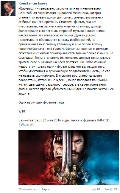 Ложка дёгтя: http://www.pcgamer.com/the-first-warcraft-movie-reviews-are-in/?utm_content=buffer47dab&utm_medium=social&utm_source=facebook&utm_campaign=buffer_pcgamer