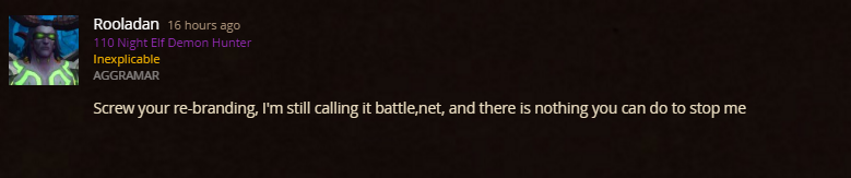 Комментаторы, однако, остались недовольны изменениями: "Это самая глупая новость от Blizzard за долгое время. Мы любим 'Battle.net'. Оставьте его в покое. Дайте ему жить"; "Идите нафиг со своим ребрендингом, я буду называть сервисы battle.net, и вы ничего не сможете поделать чтобы меня остановить".