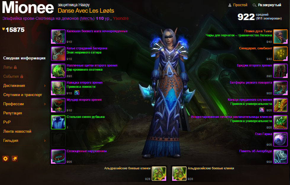 Профиль персонажа, которым убили Архимонда, доступен в оружейной игры. Cредний уровень экипированной брони — 911.