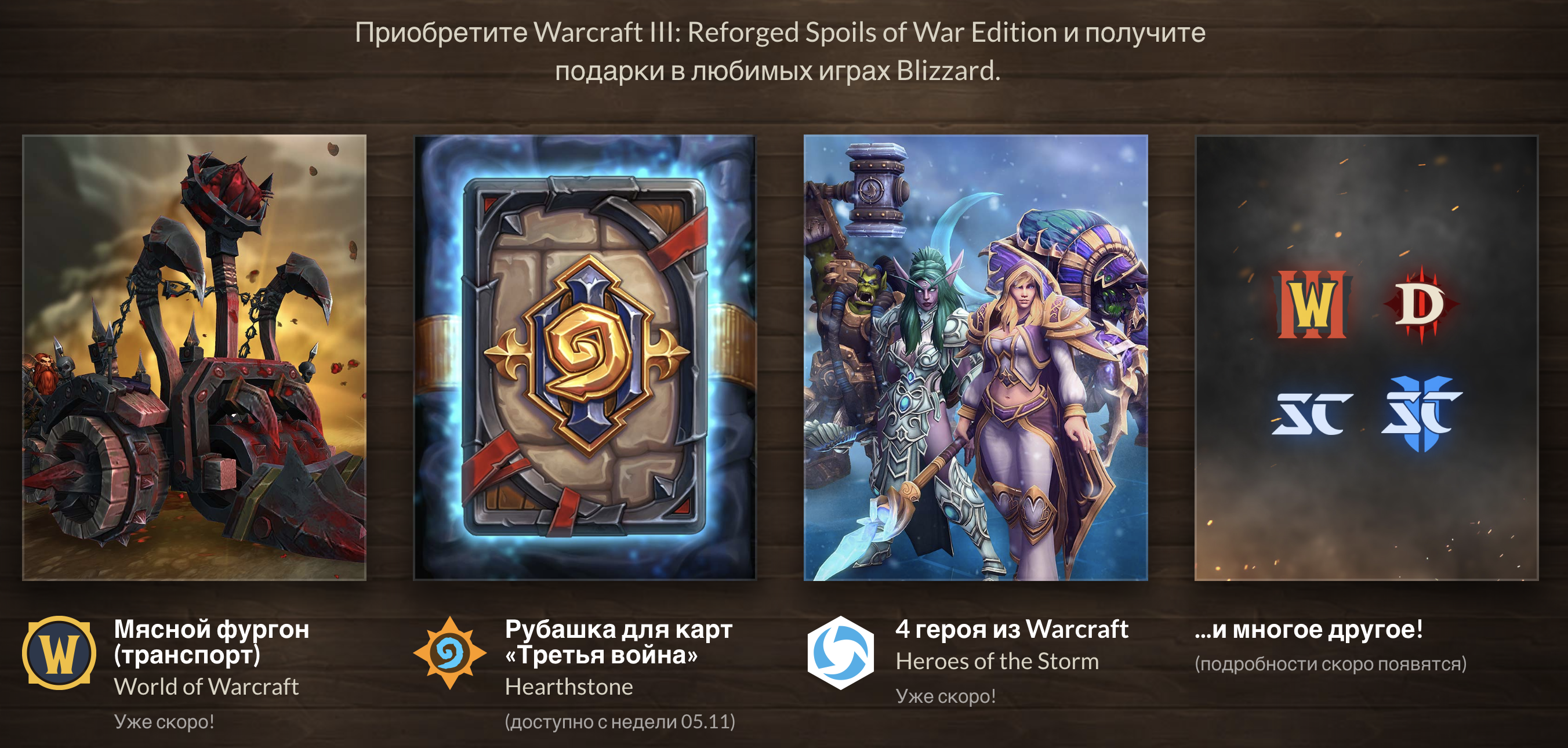 Игра уже сейчас доступна для предзаказа. Максимальное издание "Spoils of War Edition" также включает в себя предметы для других игр Blizzard, доступные уже сейчас, или в скором будущем: