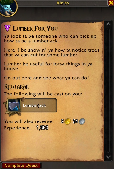 | Дровосек классической закалки | Древесина железного дерева | Калимдор и Восточные королевства |