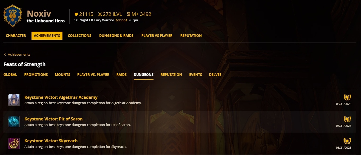 С еженедельным сбросом игровых сохранений первая порция достижений «Победитель ключа» была вручена игрокам, которые достигли наивысшего в регионе уровня прохождения подземелий в режиме Epochal+ для каждого подземелья в Midnight!