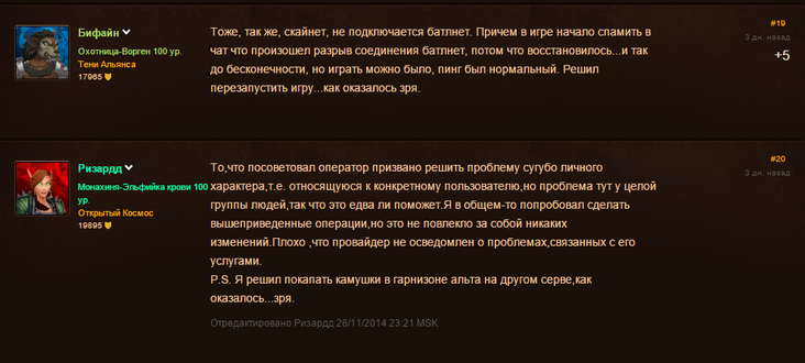 По сообщению игроков, у некоторых из них на какое-то время проблема решилась, но потом снова начались разрывы соединения. Техподдержка Blizzard для решения неполадок посоветовала игрокам связаться с их провайдером.