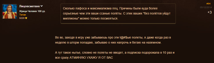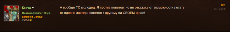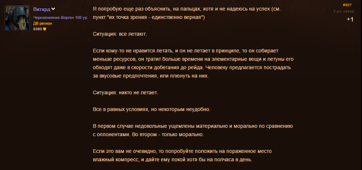 Решение компании о запрете полетов попытался объяснить Витард, чернокнижник с Гордунни, защитив от мгногочисленных нападок противников полетов, отписавшихся в теме.