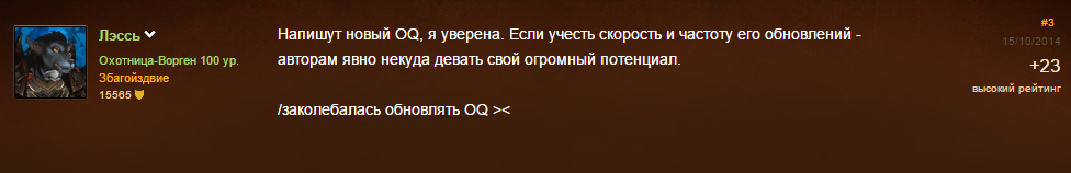 Некоторым игрокам замена oQueue понравилась. Паладину Поколотушке удалось с её помощью сходить в героик. По его мнению, минус — невозможность без настоящего oQ попасть в рейд в экипировке низкого уровня.