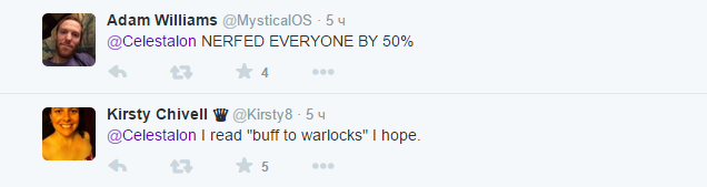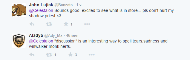 Игроки предположили несколько вариантов развития событий: от 50% нерфа для всех (чтобы никто не ушел обиженным) до введения в игру гномов-друидов. «Слово “дискуссии” означает “злые форумные посты”, верно?», — спросил разработчика Rhett_CTR, а John Lujick попросил не делать больно его жрецу Тьмы.